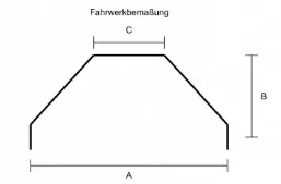 der frei wählbaren Zuschnittart (standard, nach Vorn, Nach Hinten). Die Maße A - C des Fahrwerks sind durch
